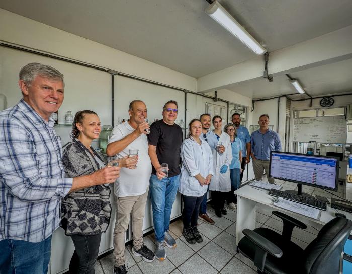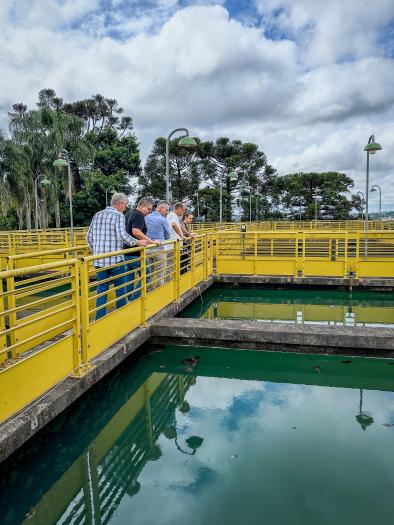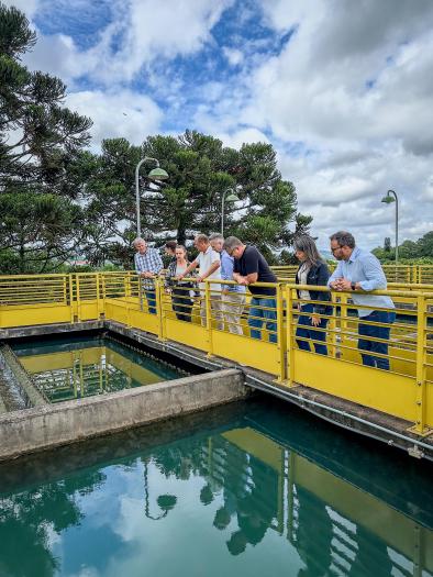 Os representantes do Legislativo foram recepcionados por uma equipe técnica da Corsan, composta por Claudia (setor comercial), Daiane (técnica e química), Iuri Pacico (coordenador regional), Emerson (supervisor de operações), Jaime (coordenador de operações), Fabrícia (agente de tratamento) e Bruna (operadora responsável por testes de análise da água).