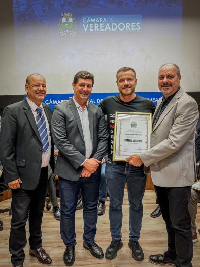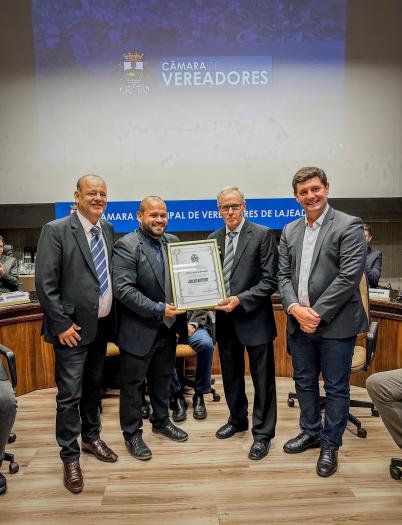 Na noite de 26 de novembro de 2024, o plenário da Câmara de Vereadores de Lajeado foi palco de uma emocionante Sessão Solene para entrega de títulos honoríficos. O evento prestou homenagem a sete personalidades cujas trajetórias estão profundamente ligadas ao desenvolvimento social, cultural, econômico e educacional do município. Sérgio da Fonseca Diefenbach recebeu o Título de Cidadão Lajeadense, enquanto Nestor José Heineck, Ney José Lazzari, João Batista Gravina, Ernany Vicente Bender Junior, Adilvo Battisti e Roberto Lucchese foram condecorados como Cidadãos Beneméritos Lajeadenses.