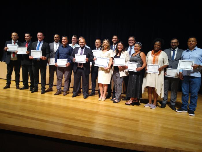 Além dos 15 vereadores, também foram diplomados a prefeita eleita Gláucia Schumacher e o vice-prefeito Guilherme Cé.