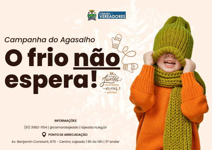 A Câmara de Vereadores de Lajeado está promovendo mais uma edição da tradicional Campanha do Agasalho. Em 2025, a grande novidade é a ampliação da campanha, que agora também arrecada alimentos não perecíveis e produtos de higiene básica.
